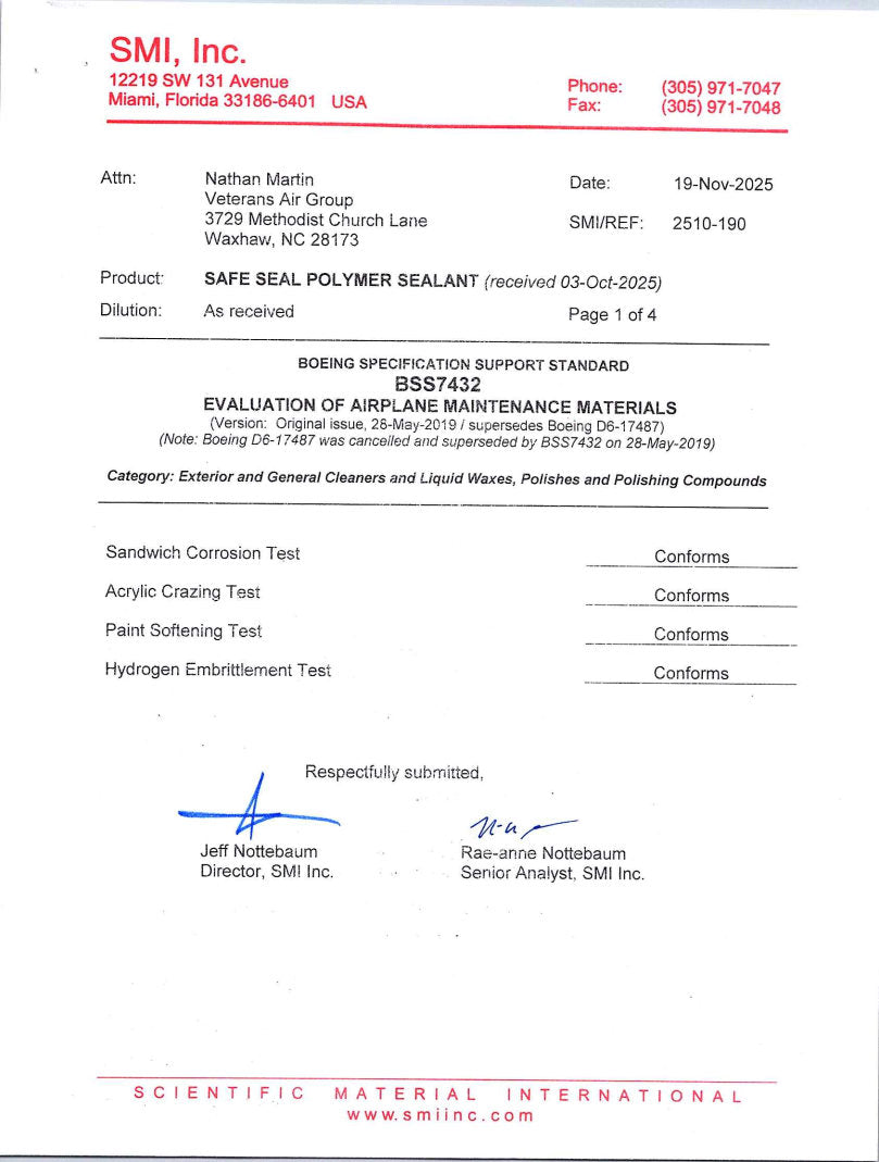 - Boeing Spec BSS7432 certified